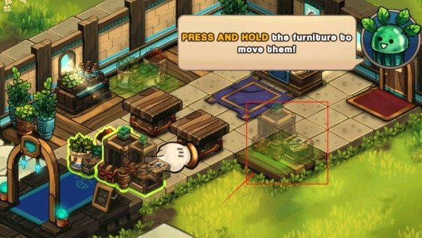3.对这个房间布局进行改造,长按住这个大的柜子,然后可以移动到红色框框标记的地方。