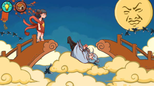 2、开启下一关鹊桥相会,游戏中的角色开始跳跃,跳到桥的对面。