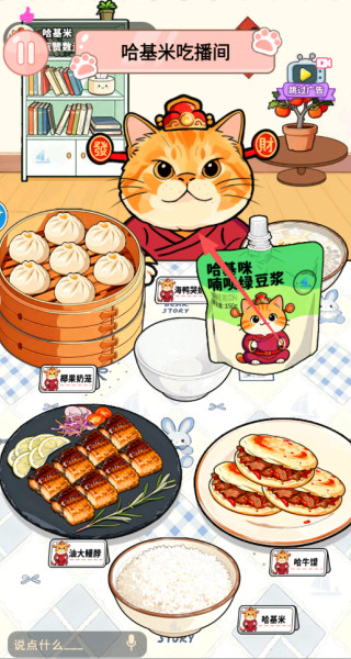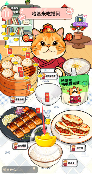 1、操控可爱哈基米开启吃播,投喂多样食物,触发开心傲娇嫌弃等不同反应,收集观众礼物解锁新食材与道具。