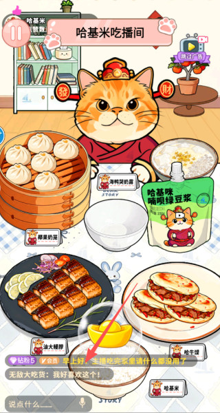 3、用观众打赏的金币解锁专属餐具、直播背景、哈基米皮肤,升级麦克风、补光灯等直播设备,提升直播效果。
