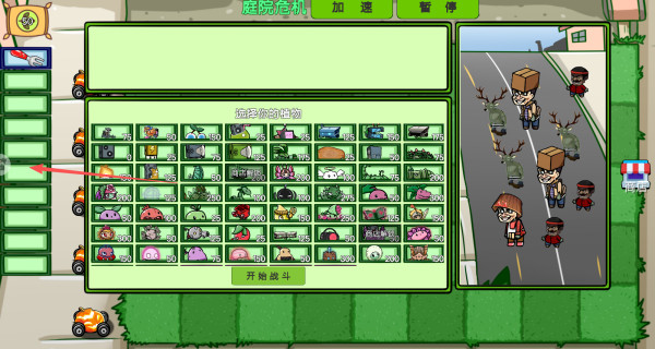 2、选择好挑战之后,我们首先需要选择我们需要的植物,需要考虑到搭配才行。