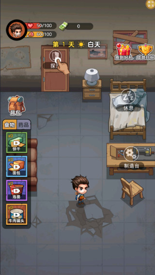 2、玩家置身于安全屋,选择探索的地点,寻找需要的东西。