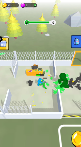 2、射击一拥而上的对手拿起武器开始射击,不断的射击消灭对手获取奖励。