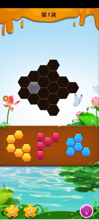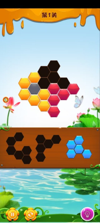 3、将屏幕下方随机出现的不规则的方块拖拽至目标位置;