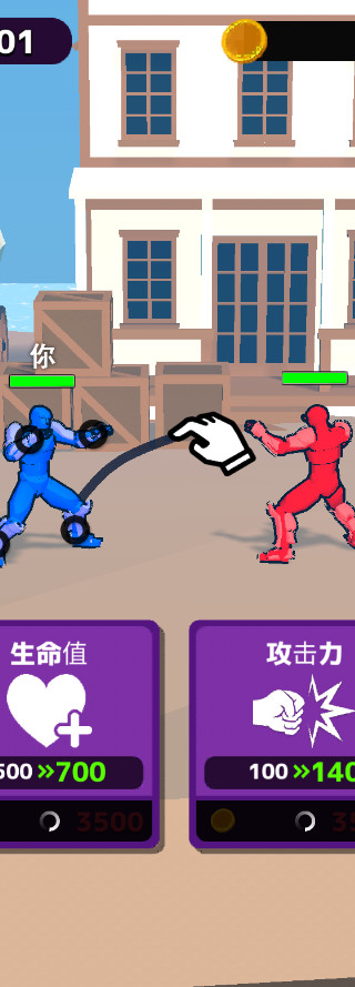 2、两人之间画线就可以控制你的角色对对手展开攻击。
