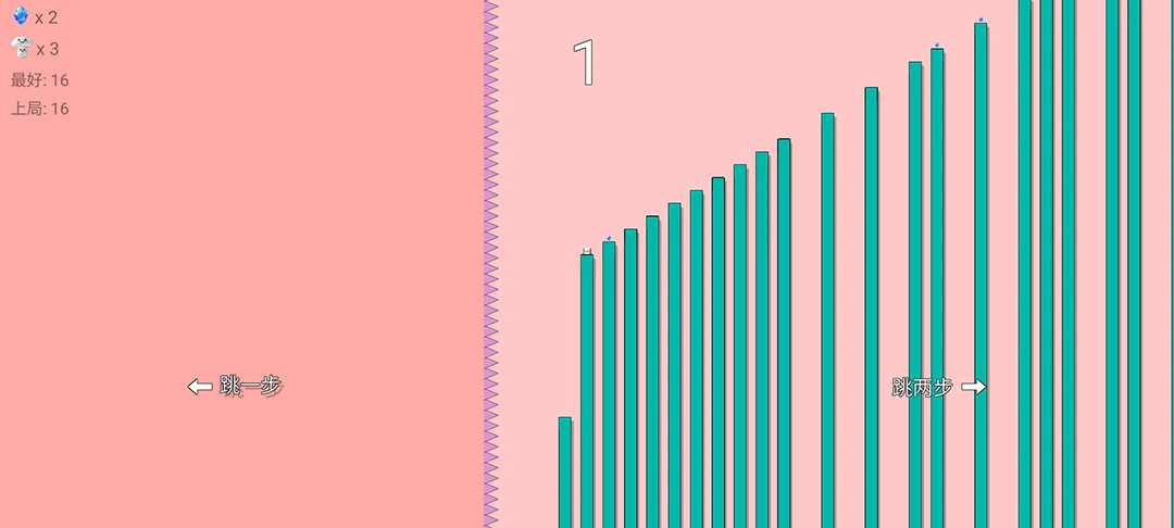1、通过按压控制跳跃力度,根据距离选择合适释放时机;