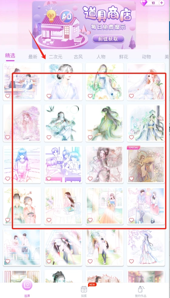 1、进入后浏览每日更新的图案库,挑选感兴趣的画板,即可开启涂色创作。