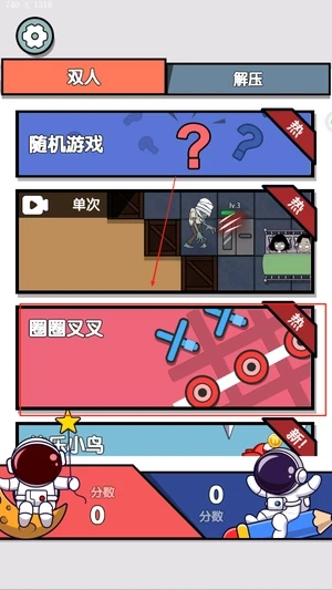 双人对抗赛是一款以双人互动为主的休闲对战游戏,里面加入了圈叉、欢乐鸟、切萝卜、牛顿钟等多种不同玩法,玩家可以根据自己的喜好自由选择挑战内容。游戏规则都比较好理解,上手不会太难,玩的时候既要看反应,也需要一点判断,比较适合和朋友一起消磨时间。