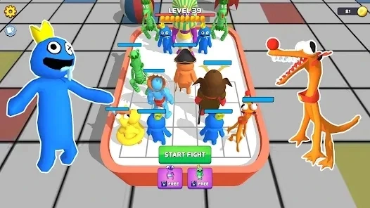 3.操控强力怪物参与战斗,击败所有对手以获取胜利,合并怪物彩虹朋友的玩法相当不错。