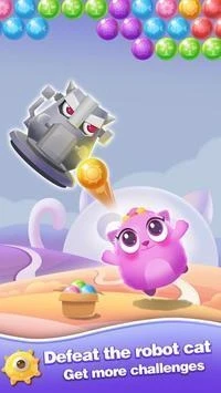 这款游戏有着卡通与清新的风格,玩家需要操控小猫,通过拍摄不同颜色的泡泡来完成关卡挑战。
