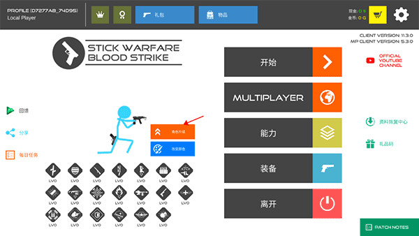 1、打开游戏主界面,大家看下面这张截图,角色底下的能力等级全是0,先点一下这个角色等级。