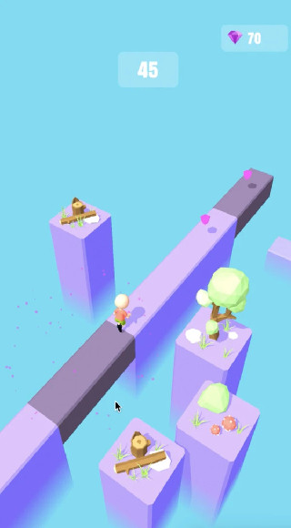 1、踏入游戏,眼前是色彩各异的方块堆叠而成的迷宫赛道,仿佛进入了一个奇幻的方块世界。玩家操控角色,从起点出发,开启充满挑战的跑酷之旅。