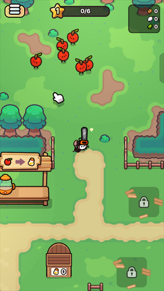●汁水四溅特效:电锯切割与水果爆破的超炫视听体验!尽管角色使用电锯收割,但萌系画风适合全年龄玩家。缤纷色彩与可爱角色会让你忽略经营的压力。