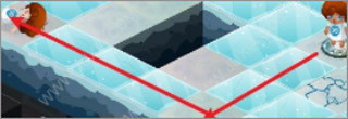 走中间的冰冻道路,落水后将清除掉最初河中的主角石像。