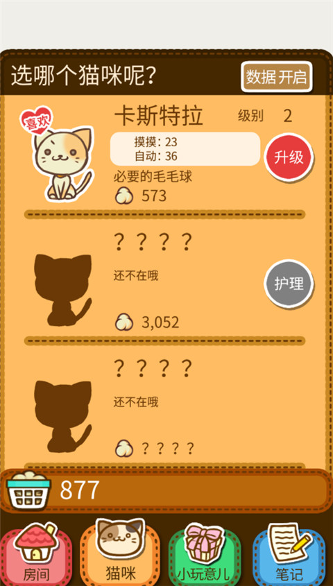 3、毛毛球可以升级猫咪,当升级到一定等级后,消耗毛毛球可以解锁全新猫咪