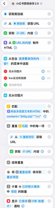 xhs笔记右上角分享-复制链接,然后执行该快捷指令即可保存图片或视频,使用时弹窗全都点允许!