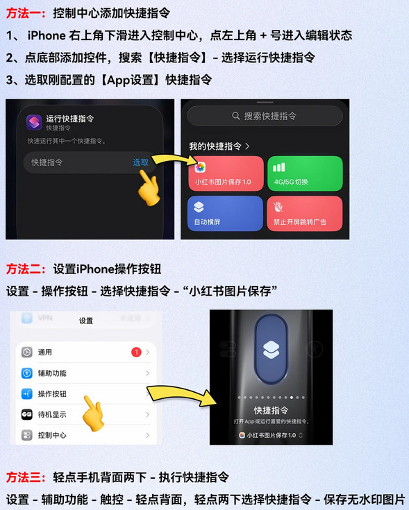 设置 - 辅助功能 - 触控 - 轻点背面,轻点两下选择快捷指令 - 无水印实况图视频保存。