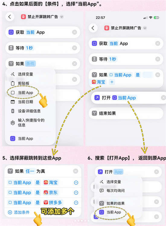 5、条件后选择屏蔽跳转到哪些App,可以添加多个