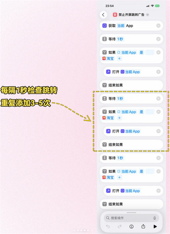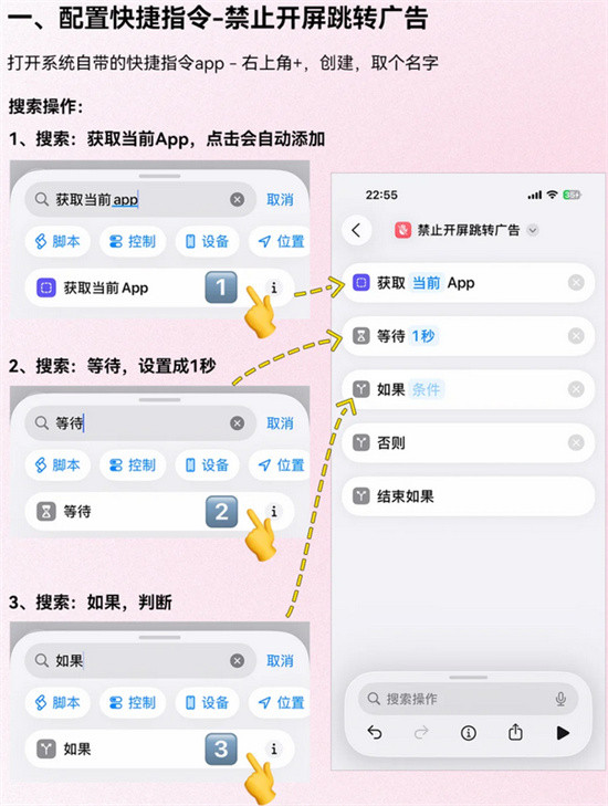 打开系统自带的快捷指令app - 右上角+,创建,取个名字:“禁止开屏跳转广告”。