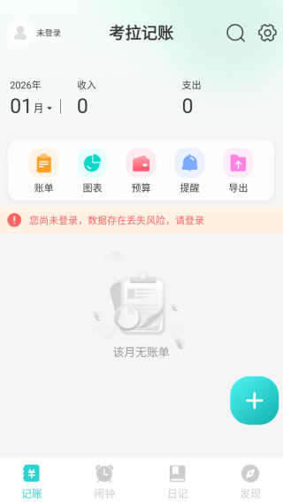 1、在应用商店搜索下载考拉记账,安装完成后打开软件,注册账号并登录进入主界面。
