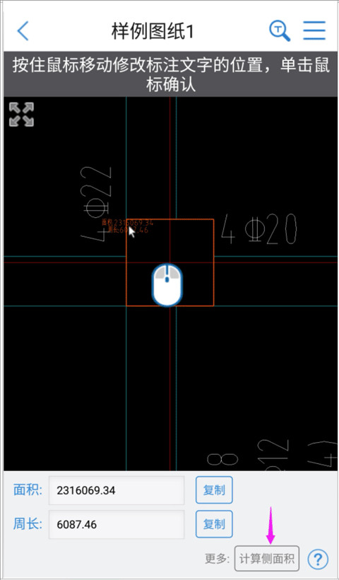 1、计算的结果都可以复制出来,可以结合文字标注功能粘贴在图纸上