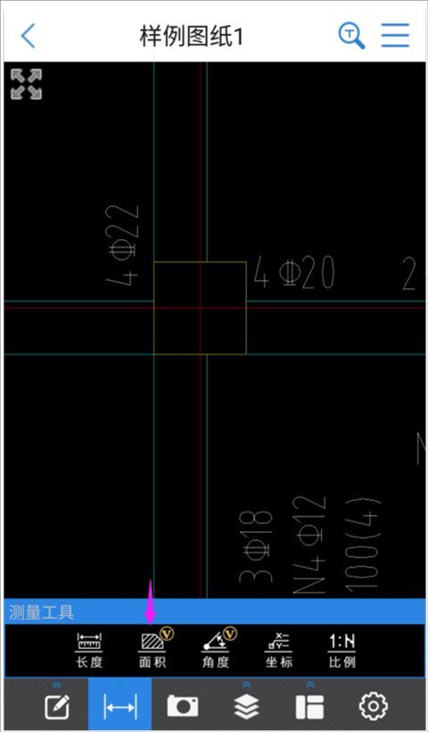 2、进入后将图纸放大,并在下方功能中的测量工具内点击长度