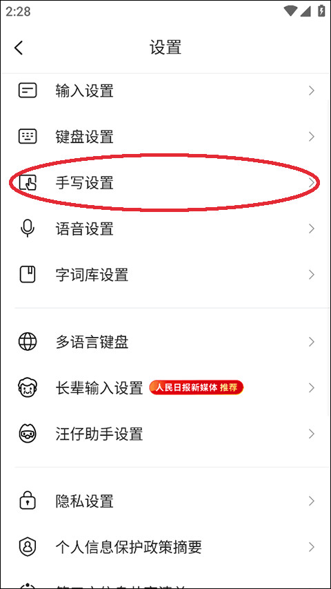 2、在设置当中,就能看到手写方面的设置了,点击进入;