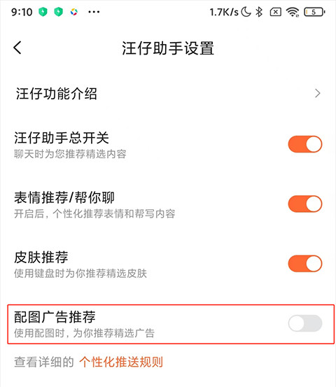 3、关闭“配图广告推荐”等功能。