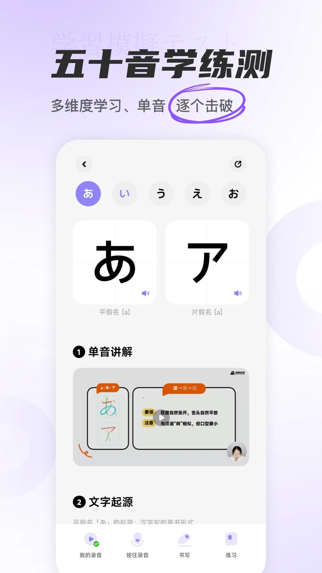 查看详细的日语五十音内容,让学生可以掌握到正确的发音
