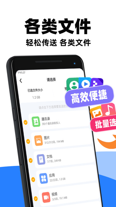 1、为手机用户设计,主打无流量高速互传,支持多种文件格式传输;
