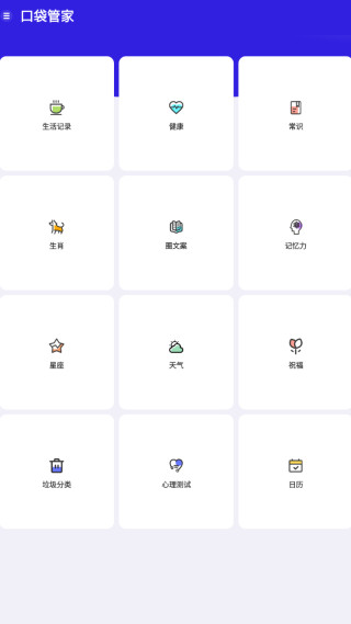 口袋管家是一款偏生活服务向的实用工具类应用,主要用于日常信息查询和生活管理。软件内提供健康食谱定制、日期与时间提醒等功能,也支持垃圾分类等常见问题查询,帮助用户更有条理地安排日常事务,整体功能集中在提升生活便利性上,适合日常使用。