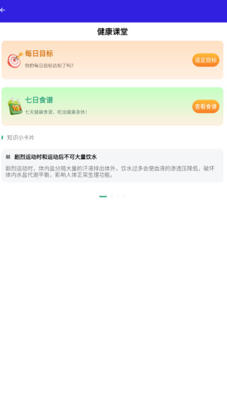 3、进入健康模块,这里提供了每日目标、七日食谱等功能区,随时选择使用。