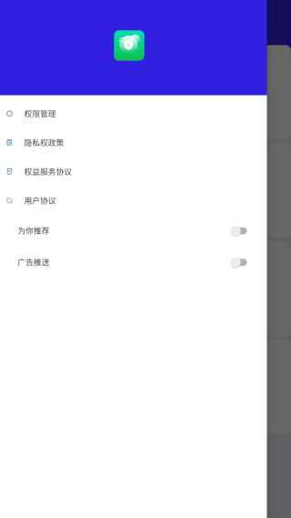 4、来到“我的”模块,则能进行权限管理,还能开启广告推送。