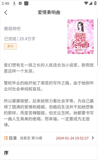 2、从都市言情到玄幻武侠,选择心仪的小说封面即可进入作品详情页面。