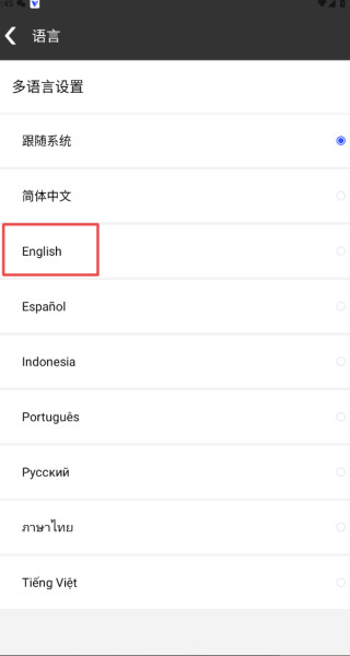3、找到多预言功能选项,点击会弹出语言选择栏,我们选择英文,点击确定就行;
