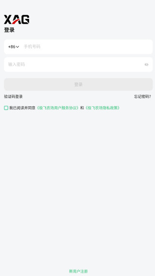 1、注册账号登录:在应用市场下载极飞农场软件,使用手机号完成注册并登录。