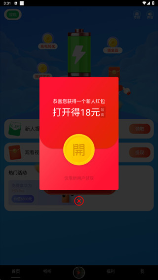 2、新用户可以领取注册福利,点击福利后去登录然后就可以领取了。